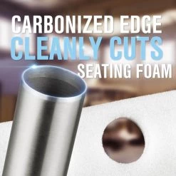Use this Foam Hole Cutter to cut precise, perfectly sized holes in your polyurethane upholstery foam for button tufting. The extremely sharp carbonized cutting edge cuts through seating foam with ease. The hole in the foam will allow the button to sink into the foam for a professional-looking tufted upholstery piece. The cutting cylinder is 3 inches, but you can cut through a maximum thickness of 5 inches by compressing the foam when drilling. This hole cutter attaches to a drill press or a handheld power drill.